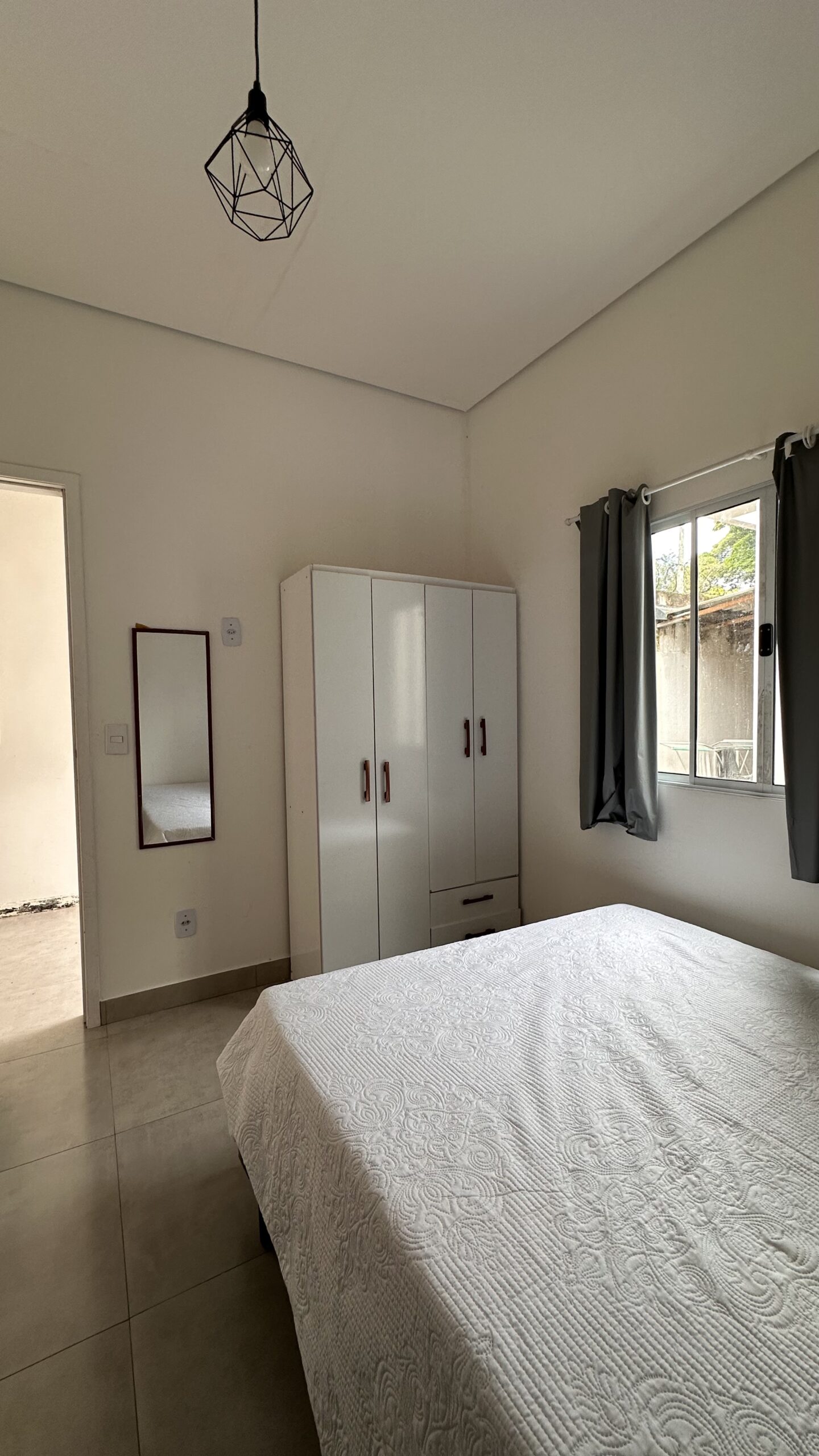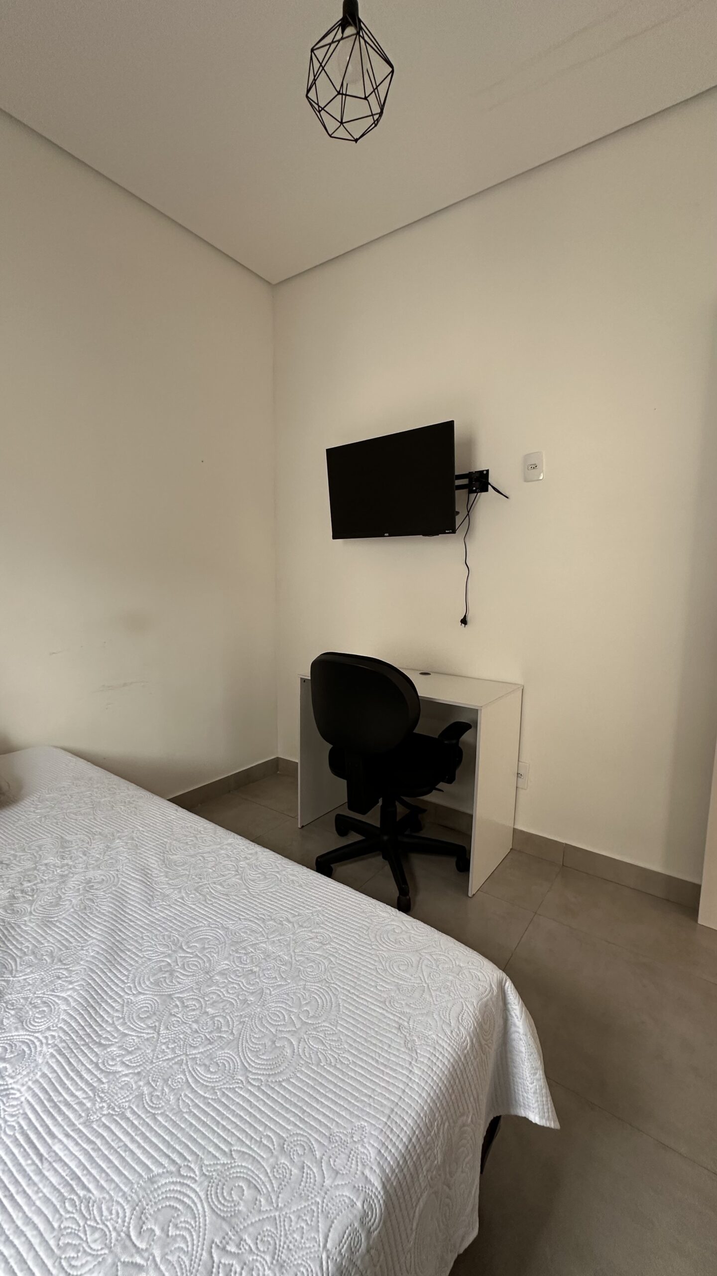 Quarto: cama de casal padrão, smart tv 32′, guarda-roupa, espelho, escrivaninha e cadeira de escritório. (roupa de cama não está incluso)
